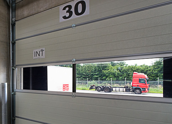 Alu 40 mm (6.000 x 5.000 mm) szekcionált ipari kapuk mellékajtóval
