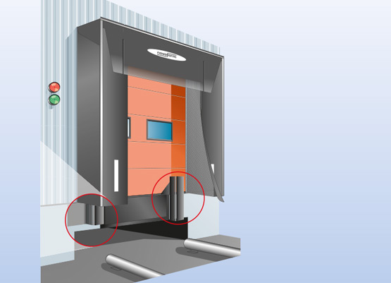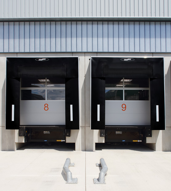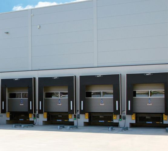 NovoDock L530i és VL6020 rakodóhidak, Thermo 40 mm szekcionált ipari kapuk, S420, kaputömítés és ütközők