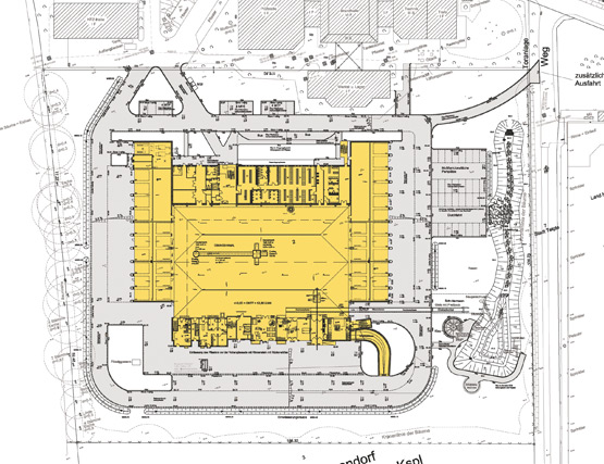 többemeletes iskolaépület és fedett gyakorló 65 x 50 m