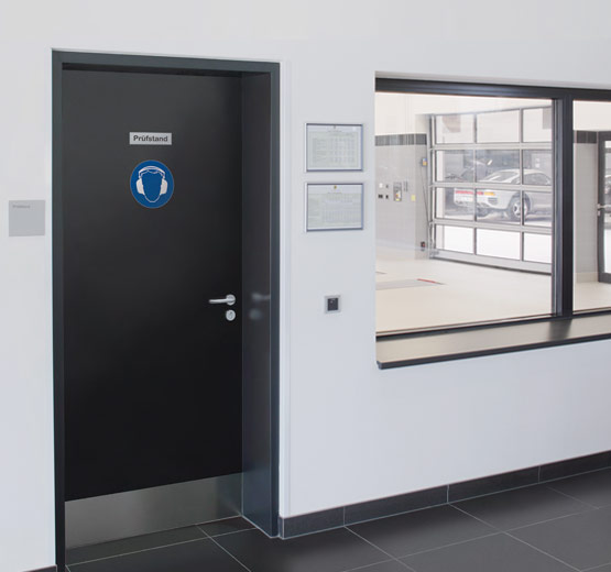 Az ajtólap belső üregét egy speciális és rendkívül hatékony hangszigetelő betét tölti ki. A tömör, vastag falcos kialakítású, 1,0 mm (opcionálisan 1,5 mm) lemezvastagságú ajtó elég nagy tömeggel bír ahhoz, hogy a magas hangnyomásszintnek is ellenálljon. A hatást az ajtólap aljába szerelt különleges süllyedőküszöb és a 3-oldalon körbefutó, magas minőségű gumitömítés teszi teljessé.