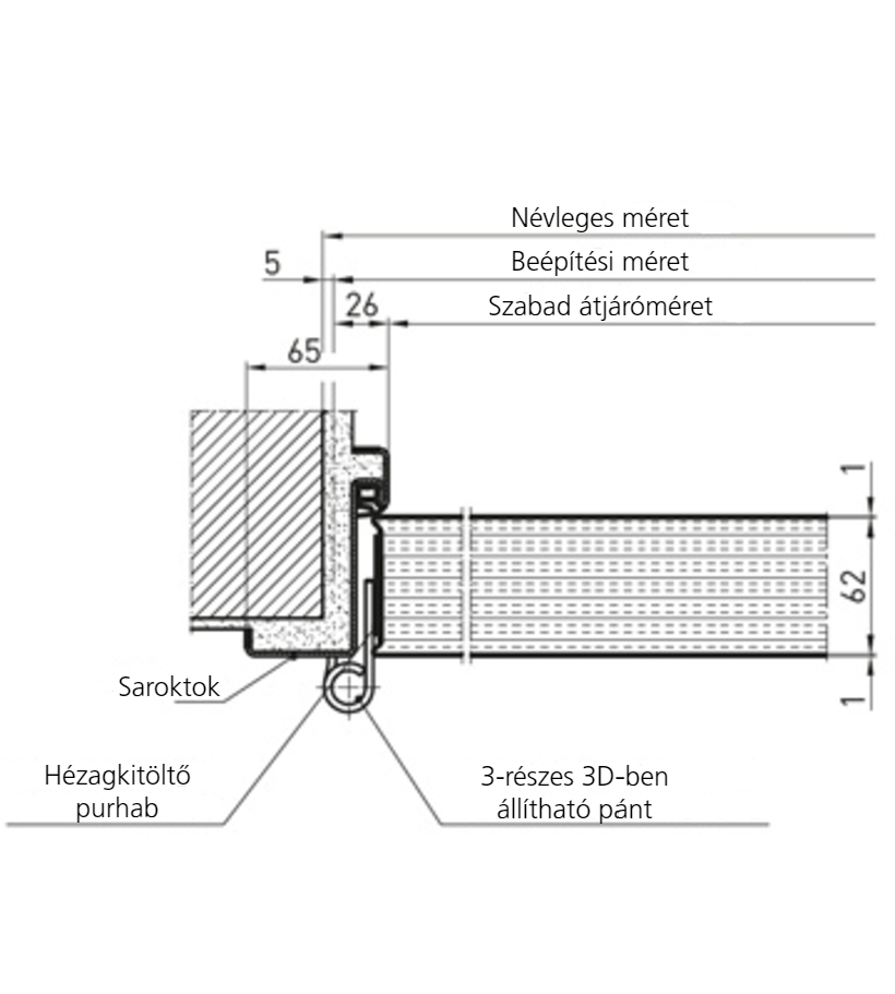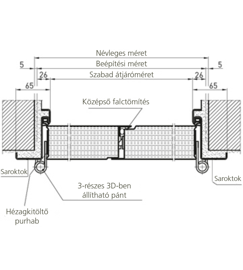 Ajtólap és tok standard kivitelben: horganyzott, alapozott RAL 9016 fehér színben