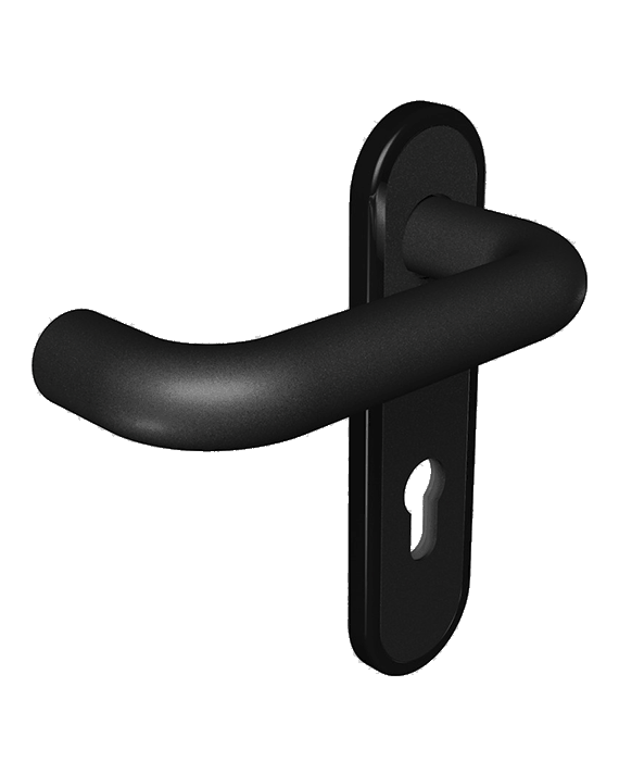 Az Elite+ ajtócsalád szériatartozéka a fekete színű műanyagból készült, rövid címes PZ-s kilincsgarnitúra.
