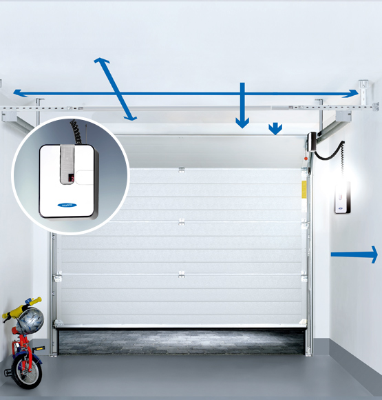 Nagy belmagasságú garázsoknál gyakran előfordul, hogy speciális felfüggeszthető keretet kell készíteni ahhoz, hogy a vezérlés felszerelhető legyen. Ilyen ráfordítást a NovoPort® nem igényel.