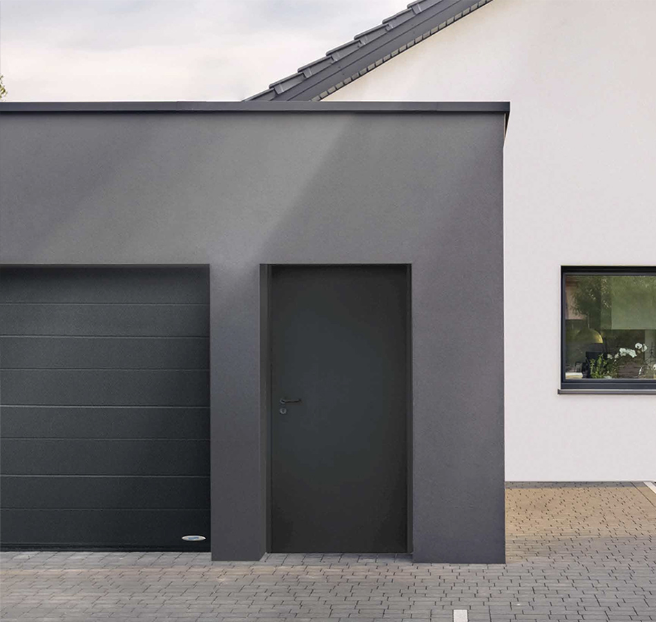 Ha nem akarja a garázskaput minden egyes alkalommal le- és felnyitni, amikor kisebb tárgyakat, például szerszámosládát, fűnyírót, kerékpárt hoz ki a garázsból, válassza a Novoferm praktikus megoldását: a kapuval teljesen megegyező külsejű mellékajtót.