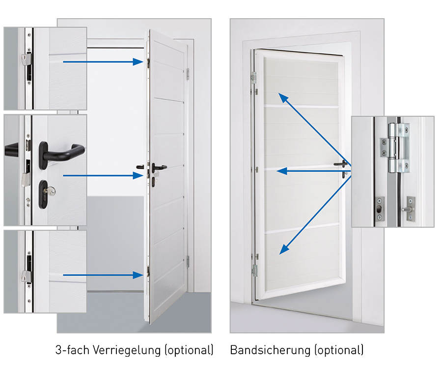 - 3 pontos reteszeléssel és pántvédelemmel (szekcionált garázskapu mellékajtó)