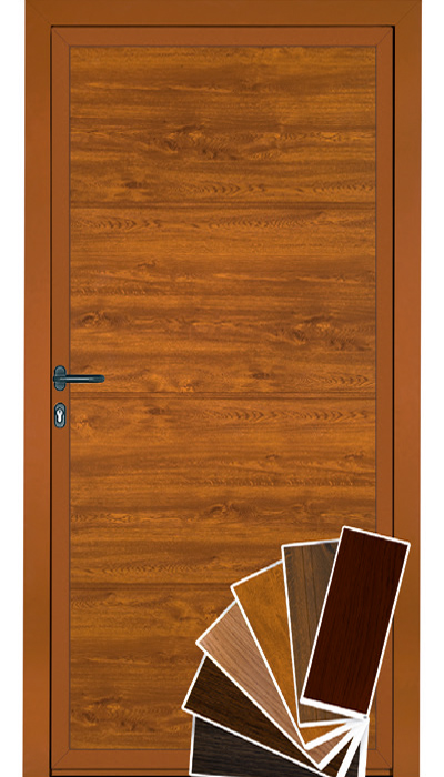 A mellékbejárati ajtók alumínium profiljai fa dekoroknál és színes szatén felületeknél az ajtó lapjának megfelelő színárnyalatban készülnek.