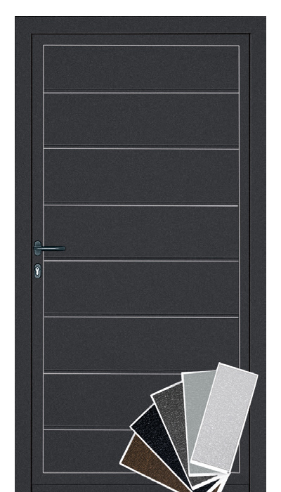 - Az antracitszürke (~RAL 7016) és tiszta fehér (~RAL 9010) színű ajtók 6-féle méretben, balos és jobbos nyitásiránnyal, azonos áron kaphatók.