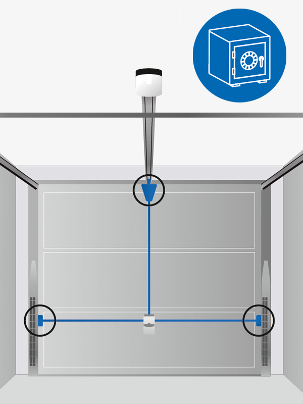 Az elektromos hajtással és 3-pontos reteszeléssel rendelkező Novoferm billenő garázskapu által biztosított védelem a trezor-elven alapszik. Erről gondoskodik az automata reteszelés a kapu felső élénél a hajtás blokkolásával, valamint a biztonságos reteszelés tömör csapokkal két oldalon a tokszerkezetbe.