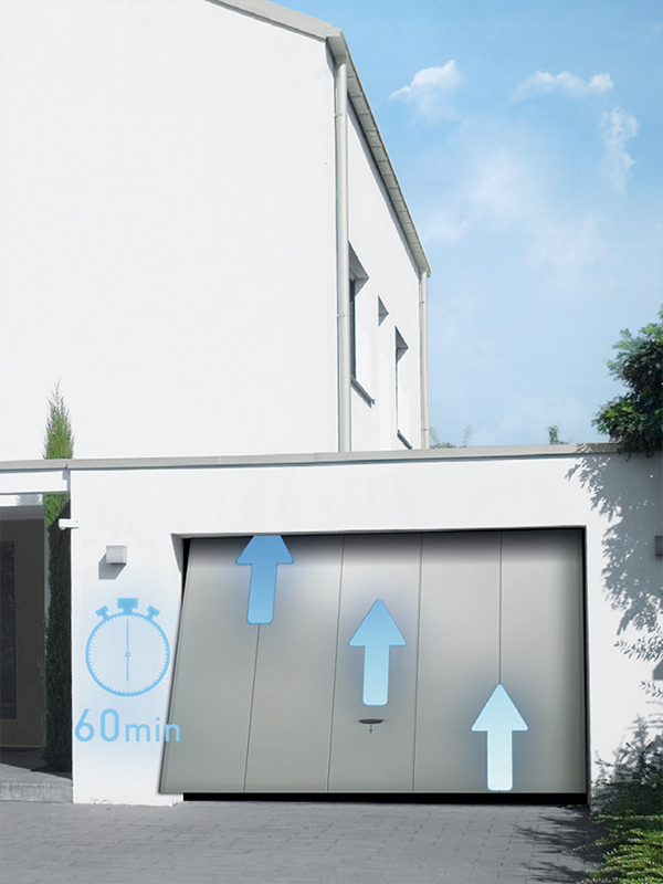 Az elektromos hajtással rendelkező Novoferm billenő garázskapuk önellenőrző lekapcsoló automatikával vannak felszerelve.