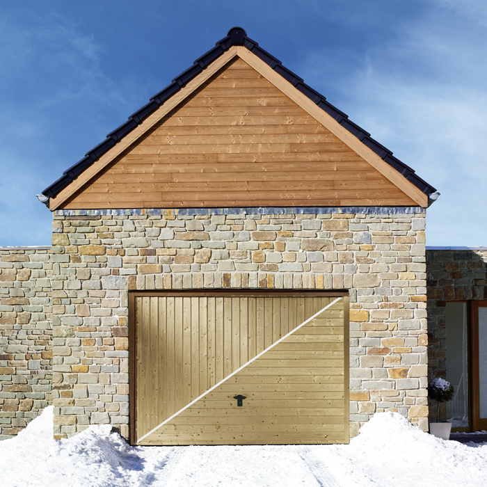 A Novoferm tömör fa burkolattal ellátott billenőkapuk vízszintes, függőleges vagy átlósan bordázott, valamint halszálka mintázattal kaphatók.