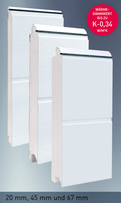Az egyes kapuszekciók kizárólag dupla falú szendvicsszerkezettel készülnek, melyek hőszigetelő PUR habbal vannak kitöltve. A szimpla falú kapukkal szemben így biztosítható a felület nagyobb stabilitása, a kapu csendes futása, valamint a jobb hang- és hőszigetelés. A szekciók közötti rugalmas gumitömítések még hidegben is lágyak maradnak és jól zárnak, megakadályozva a hőveszteséget és a por bejutását.