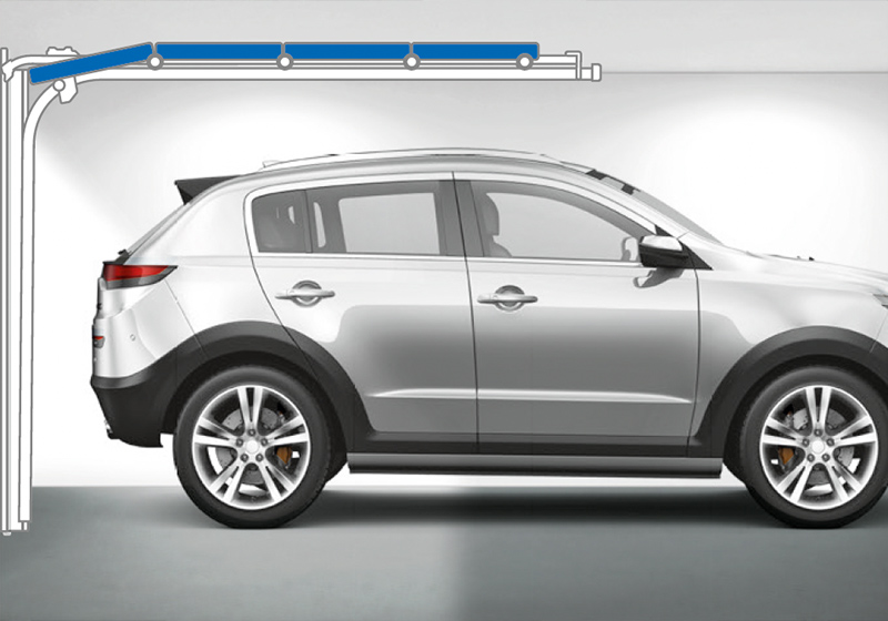 Mivel a szekciók helytakarékosan a mennyezet alá futnak be, több szabad tér marad a garázsban. Ideális megoldás magasabb járművekhez, mint pl. terepjárókhoz vagy kisteherautókhoz.