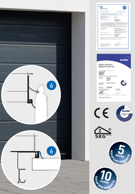 A minőséget nem szabad elrejteni: minden Novoferm szekcionált kapun megtalálható a Novoferm-minőség védjegye. A felhasznált legjobb anyagok és az első osztályú megmunkálás garanciája!
