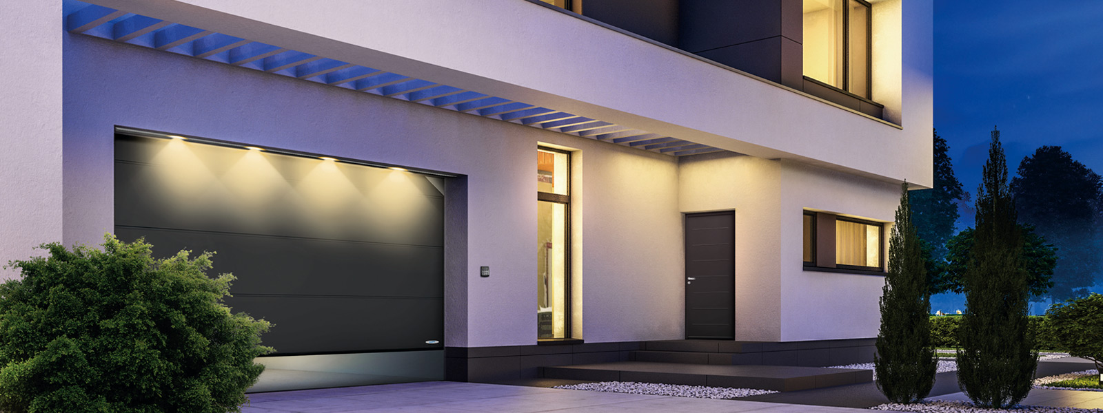 - Kényelmes működtetés a SmartHome-rendszernek és a csendes működésű garázskapu hajtásoknak köszönhetően
