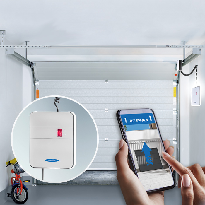 A rugalmas, oldalsó szerelésű, kizárólag a Novofermnél kapható NovoPort hajtás SmartHome rendszerekhez könnyen csatlakoztatható és app-on keresztül működtethető.