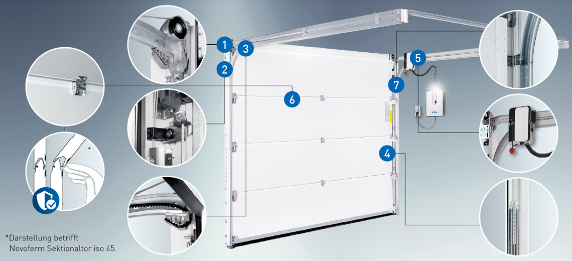 Összehasonlítva az ISO20 szekcionált garázskapuval, az ISO45 EVO prémium szekcionált garázskapuhoz és az ISO70 Premium Plus szekcionált garázskapuhoz 3.000 x 2.750 mm* (szélesség x magasság) méretig csekély felár ellenében torziós rugótengely is rendelhető, DIN EN 12604 szabvány szerint bevizsgált gondozásmentes rugótörés biztosítással.