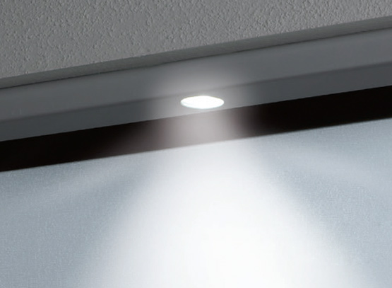 A lapos LED világító egység helytakarékosan a garázs szemöldöke alá építhető be, így majdnem a teljes átjáró magasság szabadon marad. Az alacsony fogyasztású, hosszú élettartamú LED-ek erős fényt árasztanak. A világító egység mindkét oldalon a kapu szélességéhez igazítható, így garantálva a tökéletesen szimmetrikus fényeloszlást.