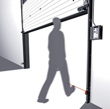 Ennél a biztonsági berendezésnél az akadályfelismerés már 8 cm-rel a kapu előtt megtörténik. Ha a kapu alsó éle akadályhoz közelít, a motor jelzést kap, a kaput megállítja és ismét felnyitja. Így a kapu nem érintkezik az akadályt jelentő személlyel, tárggyal vagy járművel.