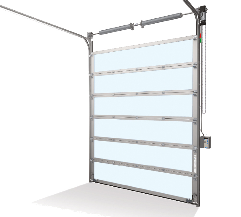 - Hőszigetelő Novolux szekcionált ipari kapu 3-rétegű üvegezéssel