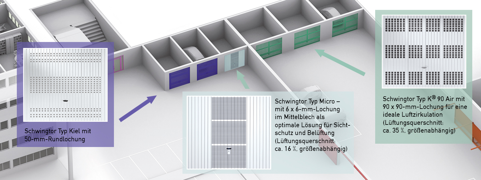 Biztonságos, kényelmes és az Ön igényeire szabva: válassza ki a három Novoferm kaputípus közül, melyikre van szüksége egyedi beállóhelyéhez a terem- vagy mélygarázsban.