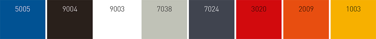 Opcionálisan 1,2 mm kapulap vastagsággal az alábbi RAL színekben rendelhető: