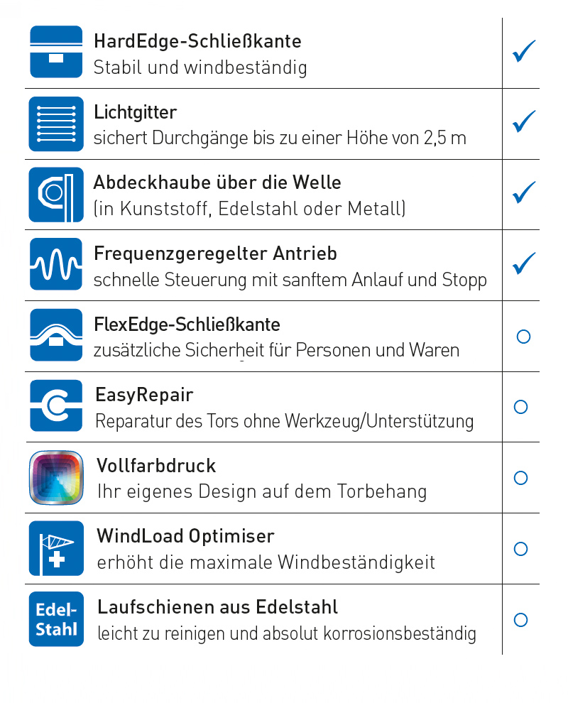 Ideális választás a mindennapi árumozgatáshoz. A megerősítő profilok további stabilitást biztosítanak. Ez a típus nagy forgalom esetén is praktikus megoldás az 1,8 m/s nyitási sebessége miatt. Alkalmas intenzív termelési folyamatokhoz, ahol az állásidő nem tolerálható .