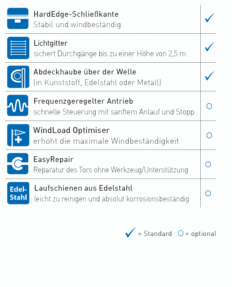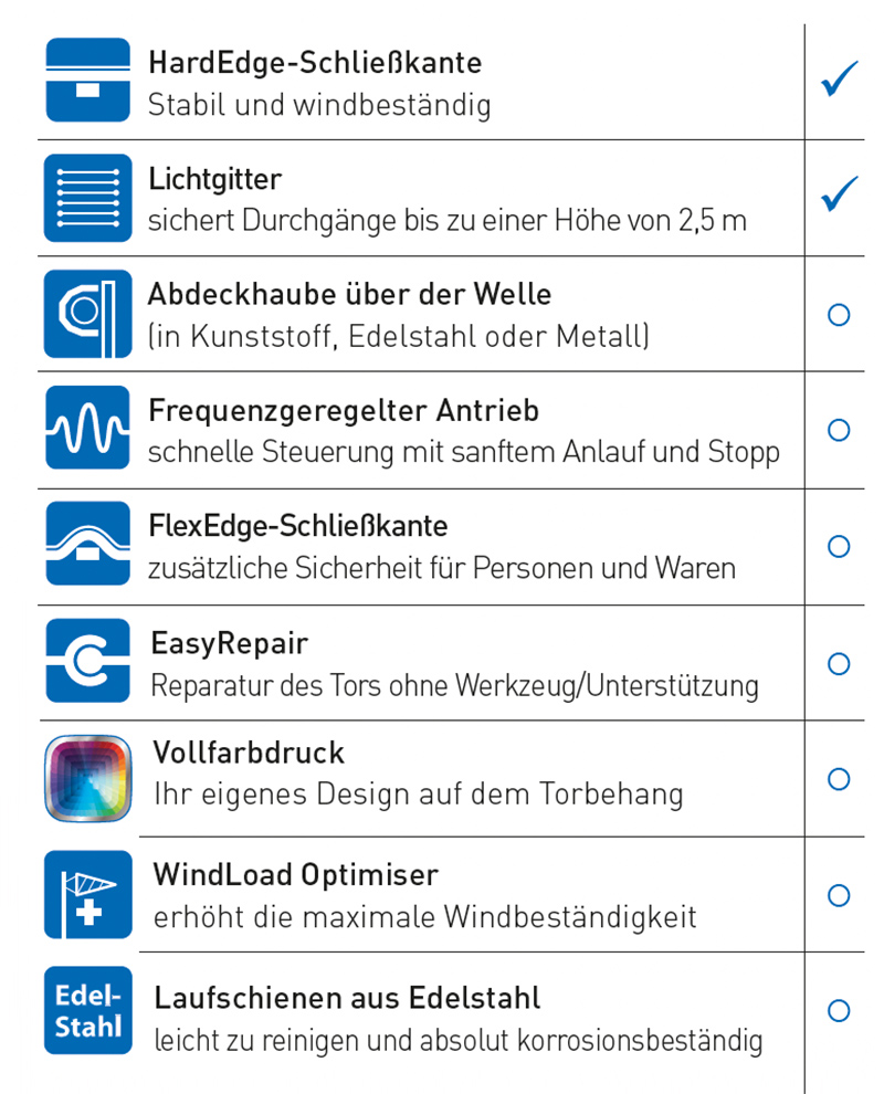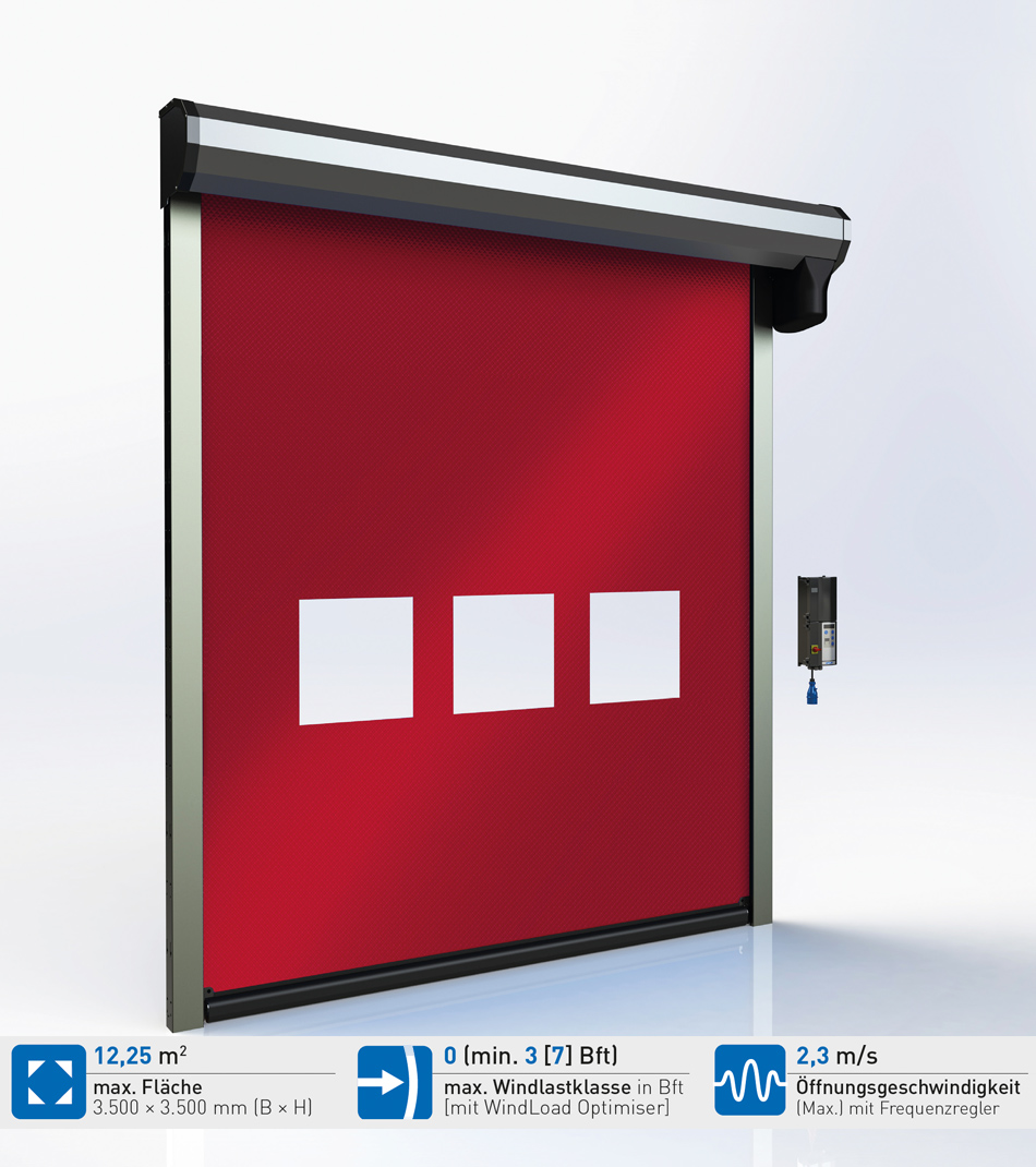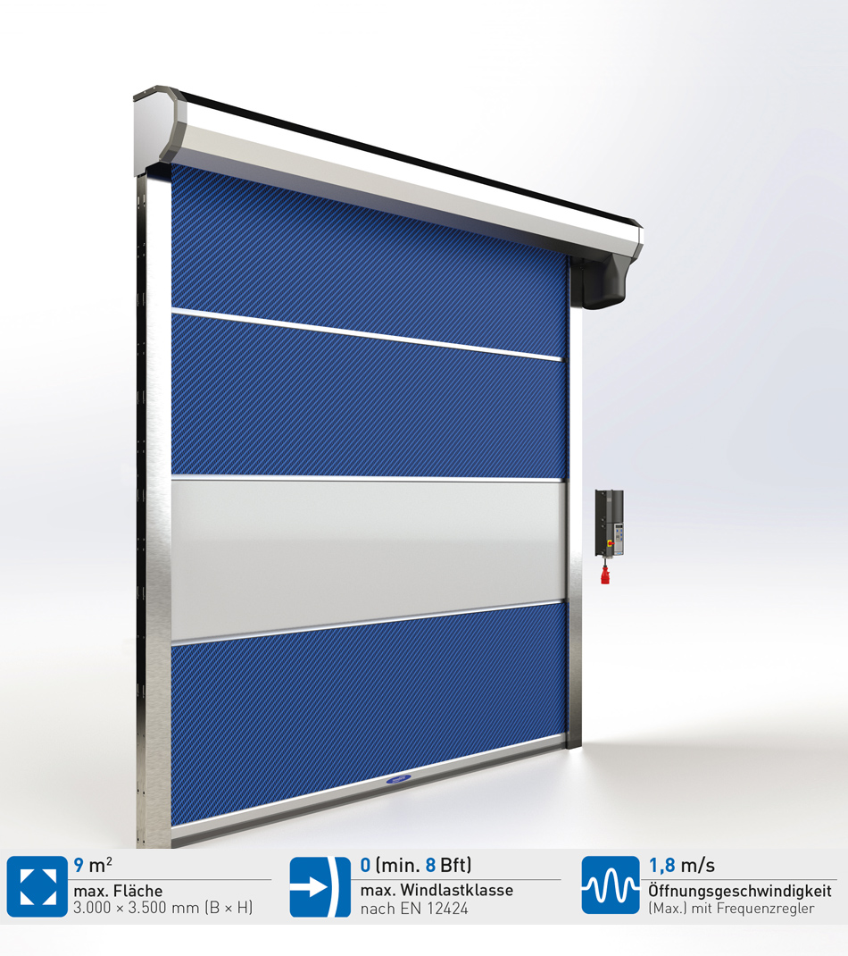 - GYORS: A Strong-E ideális az intenzív gyalogos- vagy járműforgalom részére, még nagyobb szélnyomású átjárókban is, például gyártócsarnokokban.