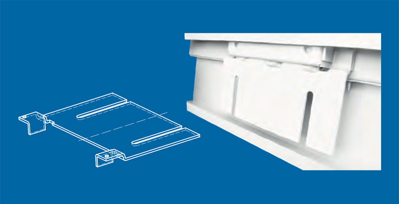 - Hegesztett, vakolatbefolyás ellen védett V8610 típusú, L/R pánttáskákkal