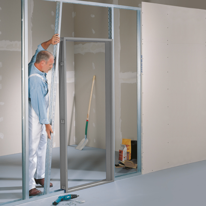 A projektkivitelezésben egyre nagyobb igény van a különböző funkciókat ellátó ajtók beépítésére, melyek súlya akár a standard ajtók többszöröse is lehet. Ugyanakkor a belső válaszfalakat a lehető legvékonyabbra építik, a legnépszerűbbek a 100 mm-es, ill. 125 mm-es gipszkarton falak. Az ajtóelemek hosszú távú működésének biztosítása érdekében különösen fontos, hogy az ajtólap terhelését optimálisan oszlassák el. Ezt segíti a gyárilag beépített szerelő- és megerősítő lemez VX-pántok használata esetén. Ezt az opcionális megerősítő lemezt közvetlenül a pánttáskára hegesztik, majd a gipszkarton fal acélprofiljához csatlakoztatják.