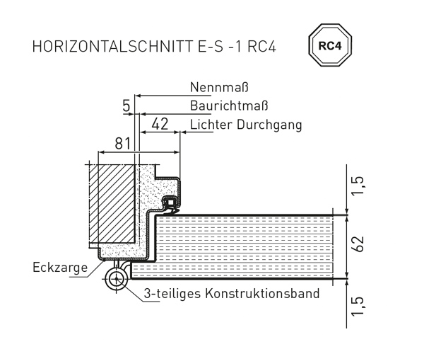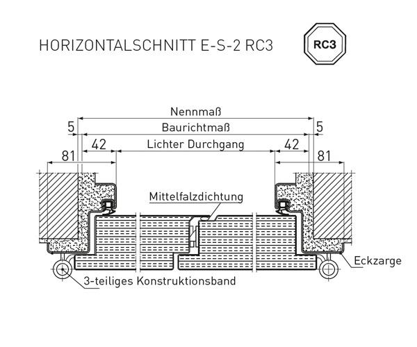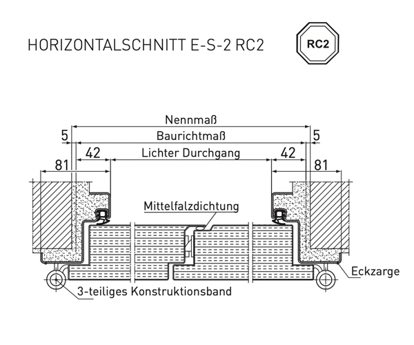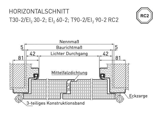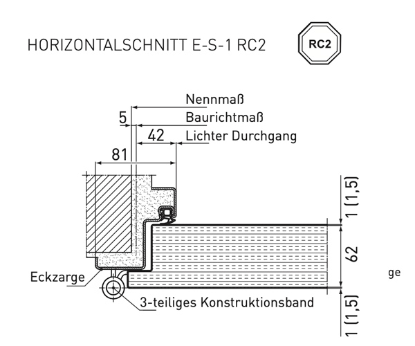 Premio E-S-2 GE nagyméret 2 szárnyú | Vastag falc 1,0/1,5 | - | * | RC 2 | 39 dB1) 41 dB2) 42 dB4) | 1,5 | min. max. |