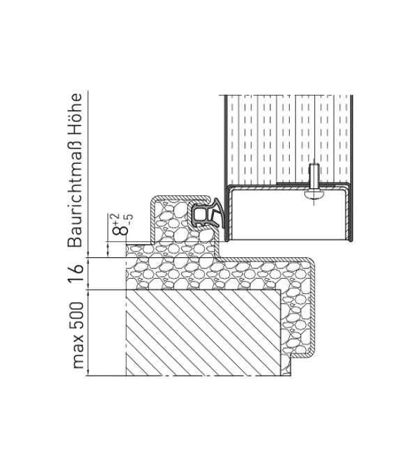 | Beépítési méret (BRM) | Szélesség min. - max. Magasság min. - max. | 625-1.375 2.000-2.500 | 625-1.375 2.000-2.500 |