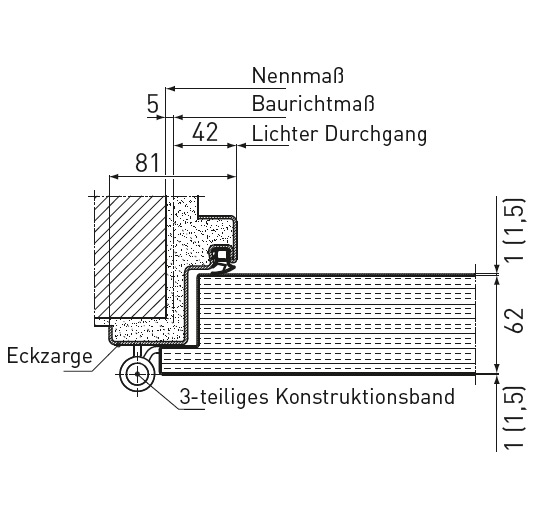 | További 4 oldalon körbefutó változatok - opcionálisan küszöb nélkül is - lásd a megfelelő termékoldalon EI2 30 és EI2 90 Rendelési méret max. | 1.375 x 2.500 | 1.375 x 2.500 |