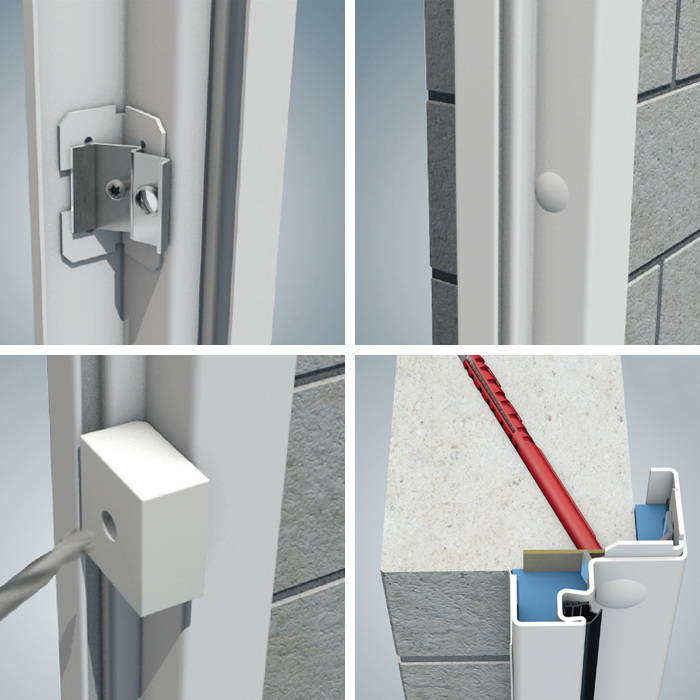 Egyszerű beépíthetőség pl. falcon keresztüli csavaros rögzítéssel, - gyors hézagkitöltés kőzetgyapot csíkokkal vagy tűzgátló purhabbal.