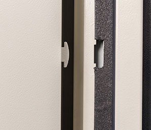 - Mindkét oldalon 0,8 mm-es, horganyzott acéllemezből készült, kőzetgyapot betéttel rendelkező ajtószárny, lapvastagság 64 mm