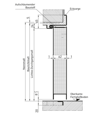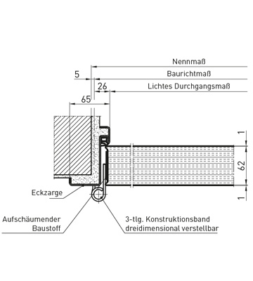 - Füstgátlás RS1 süllyedőküszöbbel vagy RS2 ráfutóküszöbbel és NFGS 55 felső ajtócsukóval, (2-szárnyú ajtóknál Dorma TS 93 GSR vagy Geze TS 5000 ISM ajtócsukóval és integrált csukássorrend-szabályzóval, állószárnyon alsó-felső reteszeléssel)