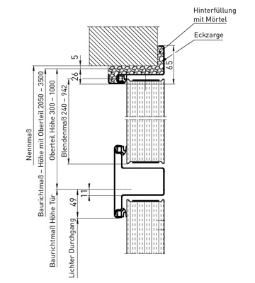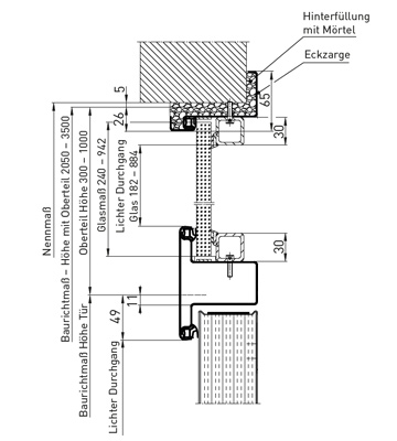 | ¹) Füstgátló ajtók felülvilágítóval csak 1-szárnyú kivitelben, max. 1250 mm BRM szélességig rendelhető. Füstgátló ajtó csak kőműves falba (tégla/beton/pórusbeton) történő beépítésre engedélyezett. |