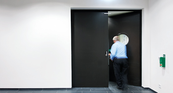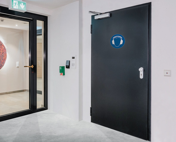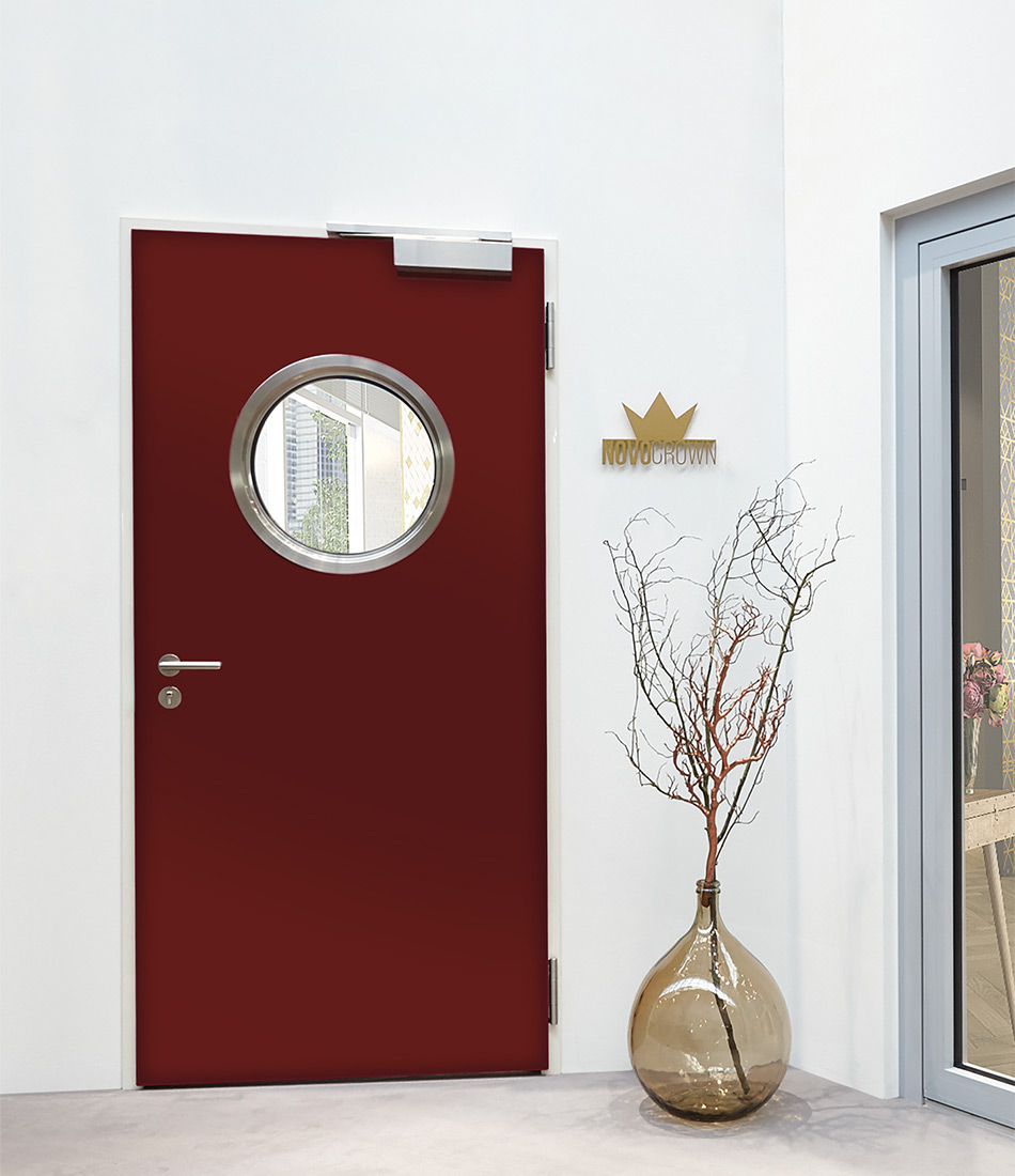 A kétszárnyú NovoPorta Premio ajtók ajtószárnyai egy síkban záródnak, így nincs szükség látszó középső ütközőlécre. A hatás pedig nem marad el: egységes és elegáns megjelenésű konstrukció még Ei90 perces tűzgátlással is.