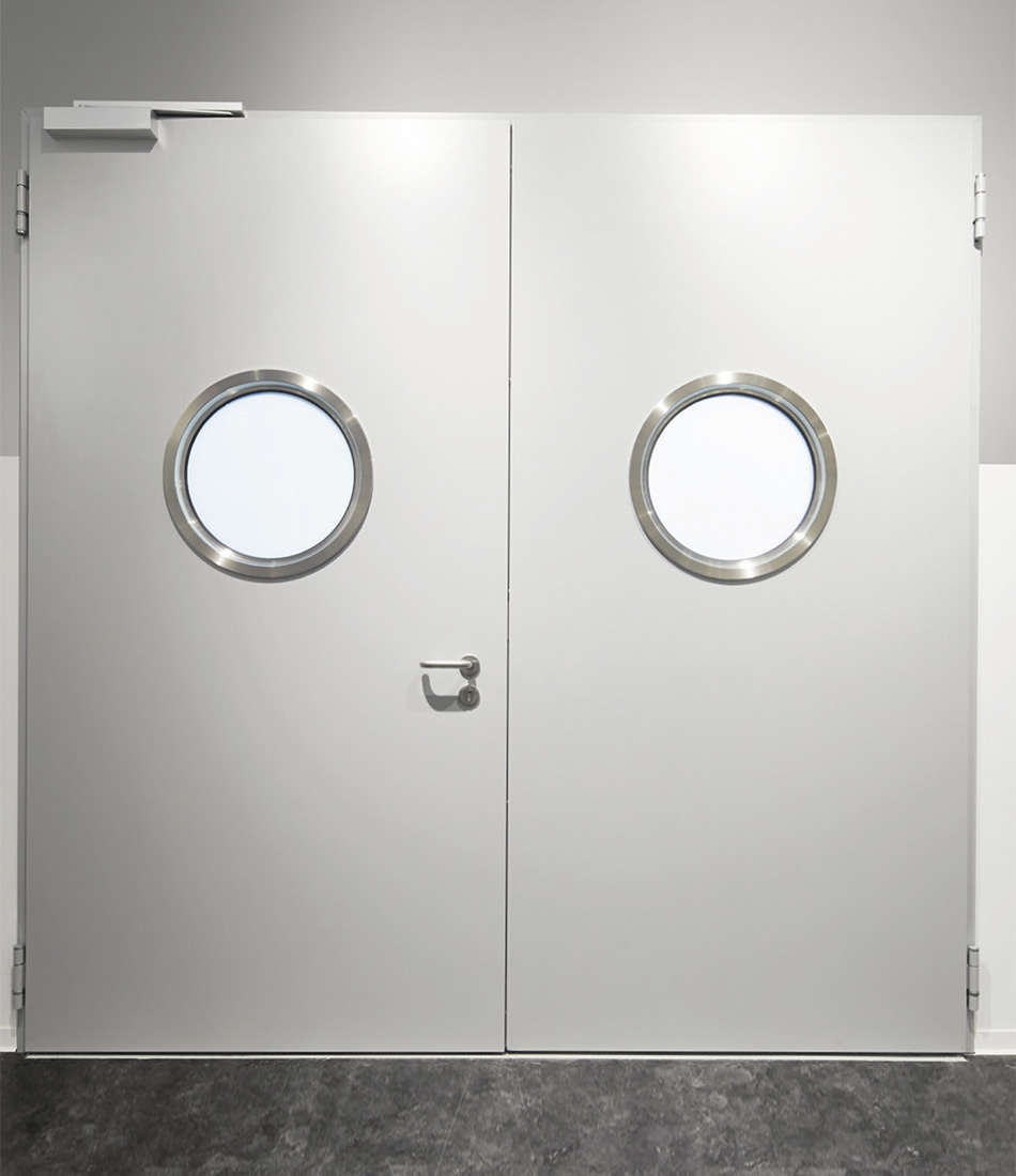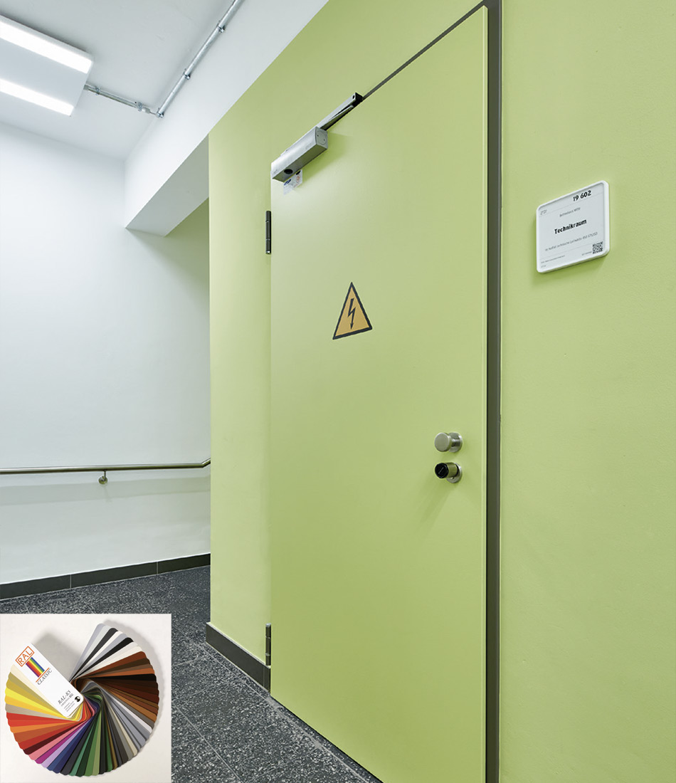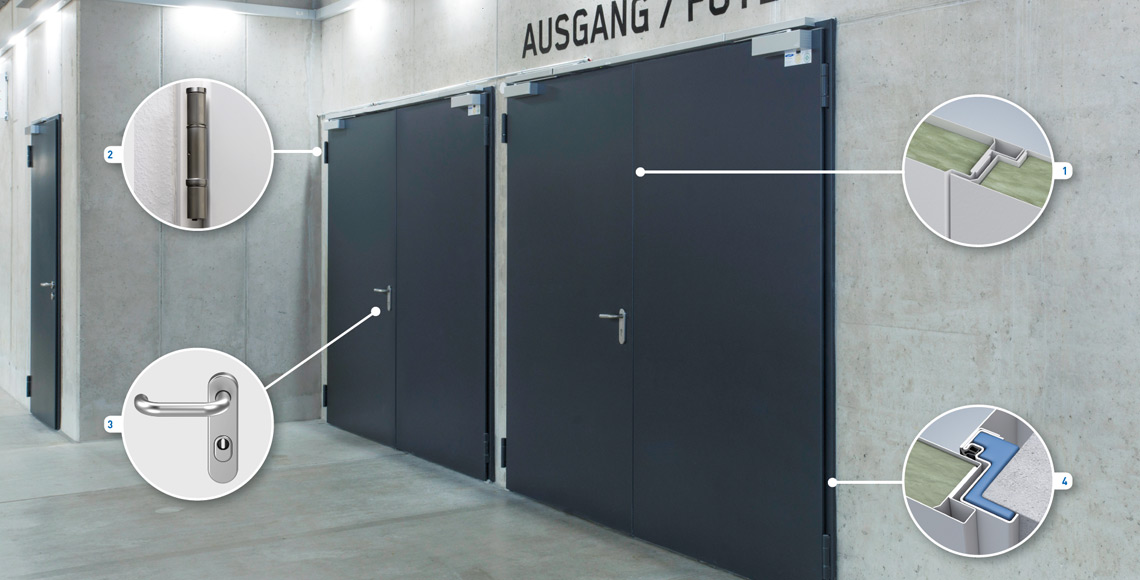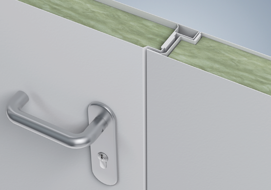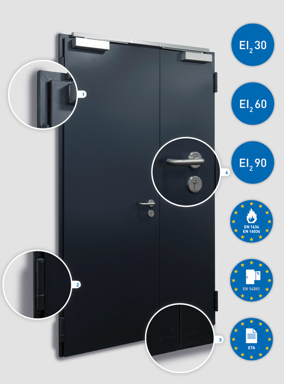 - Síkban záródó ajtószárnyak ajtólapba integrált ütközőelemmel Ei290 perces tűzgátló változatig