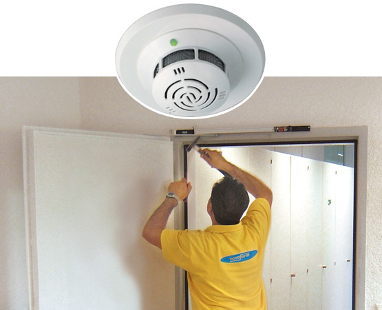 Füstjelzővel és fali nyitvatartó mágnessel felszerelt ajtókon a mágnes vészjelzés esetén kiold és az ajtó bezárul. Ennek tökéletes működéséért az ajtó üzemeltetője a felelős, épp ezért a tűz- és füstgátló ajtóknál a rendszeres karbantartás kötelező, melyet csak képzett szakember végezhet.