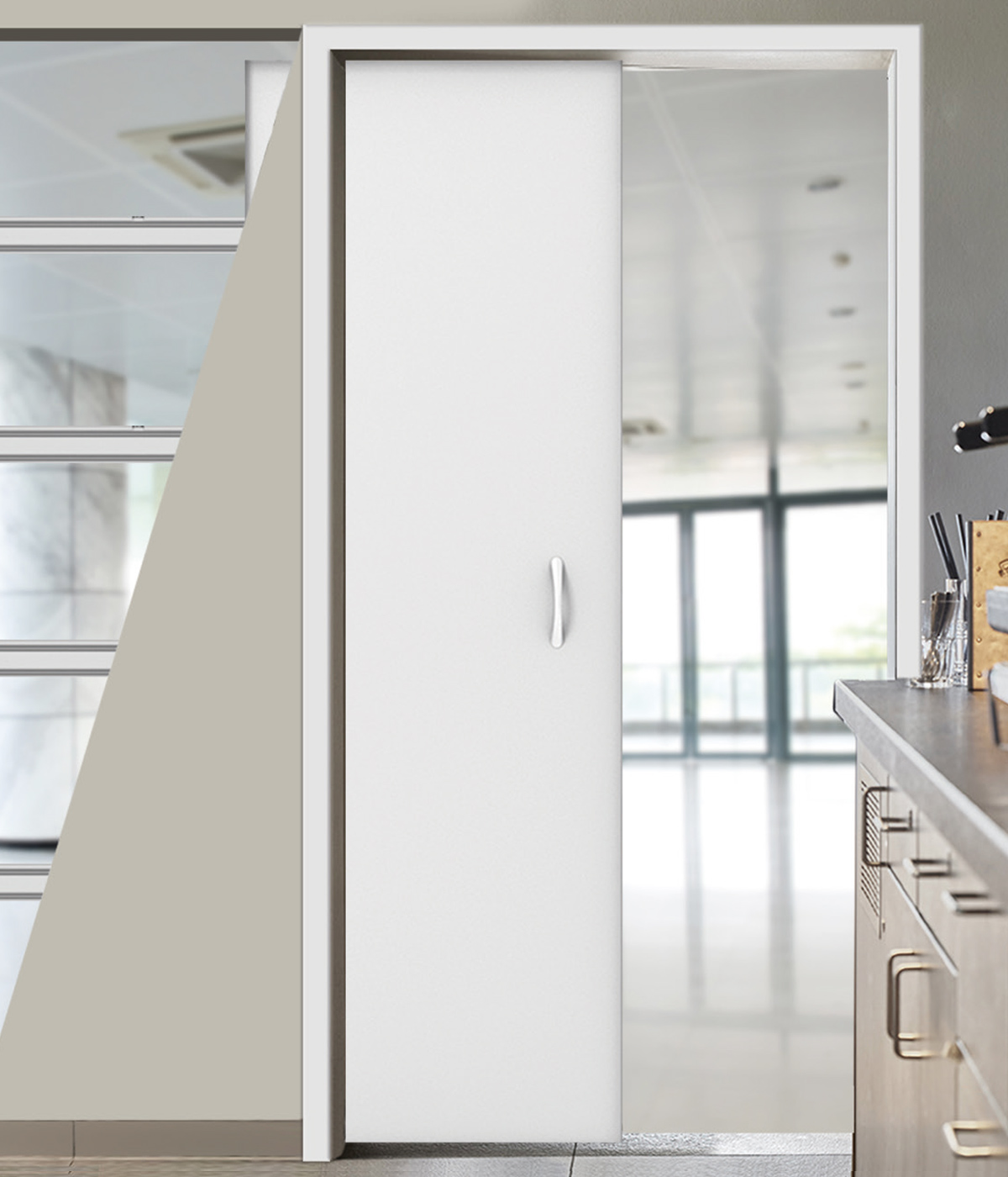 A tolóajtórendszert gipszkartonfalba történő beépítésre tervezték, és 610 mm-től 1235 mm-ig terjedő szabványos ajtólap szélességgel kapható.