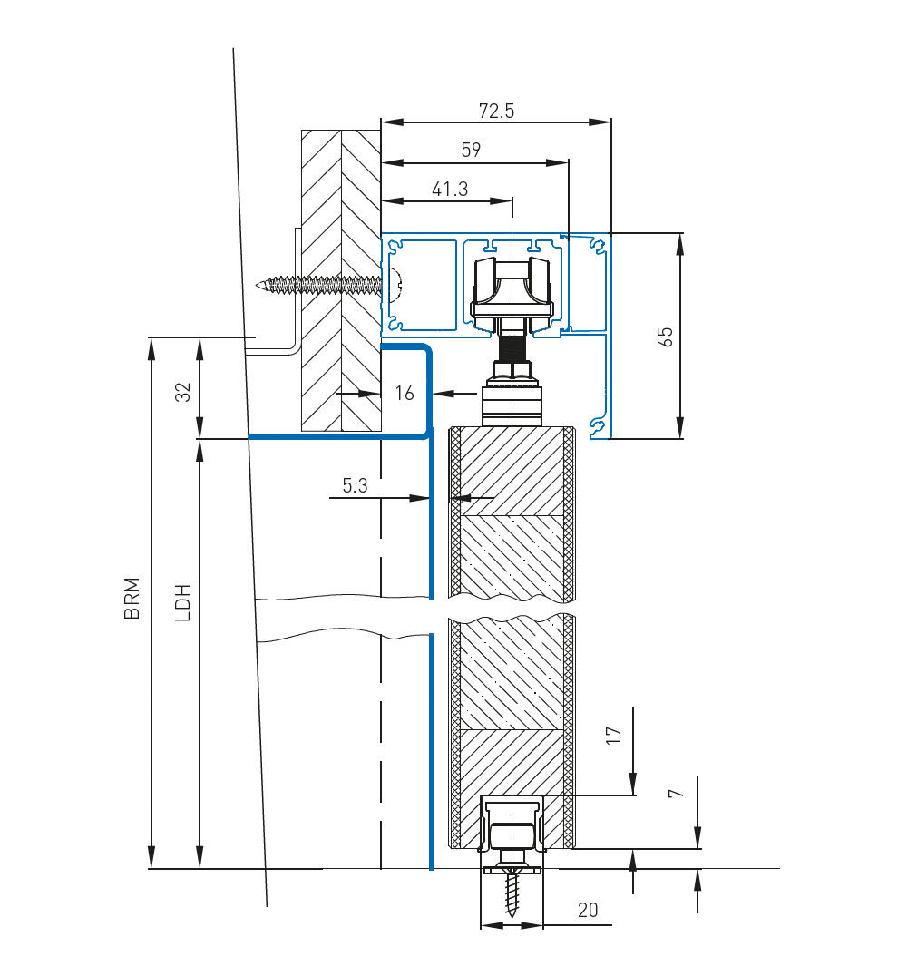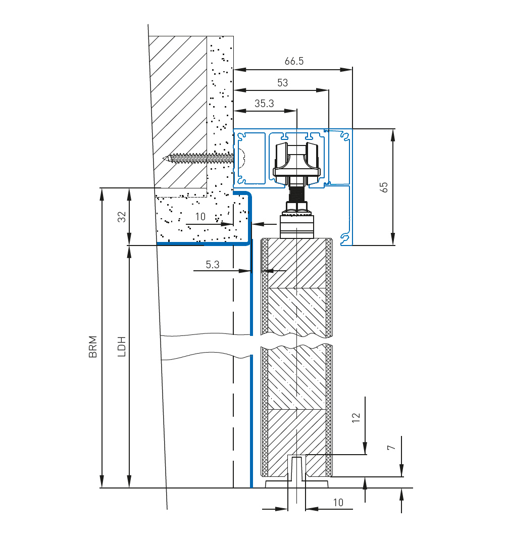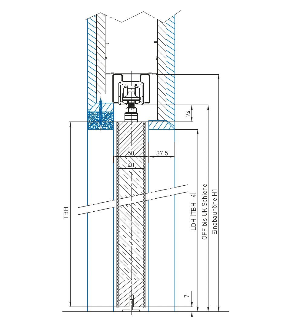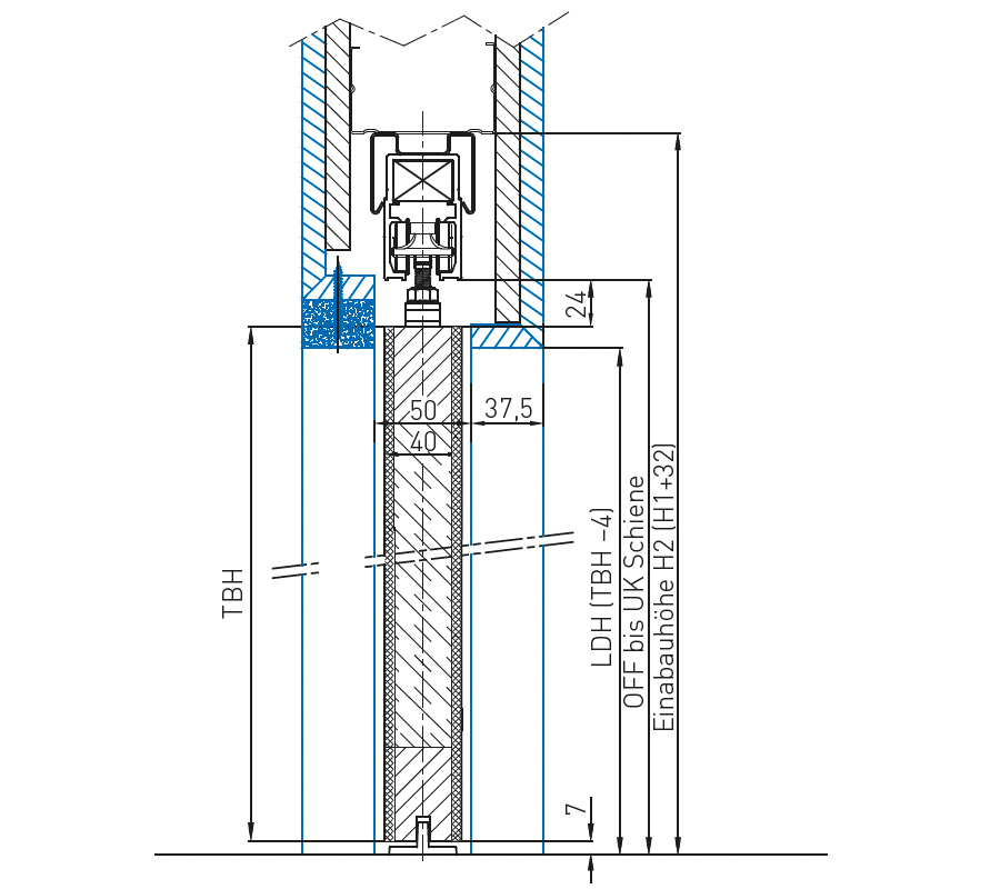 - fa ajtólapok esetén mindig golyóscsapágyas padlóvezető görgőkkel és süllyesztett szerelvénnyel