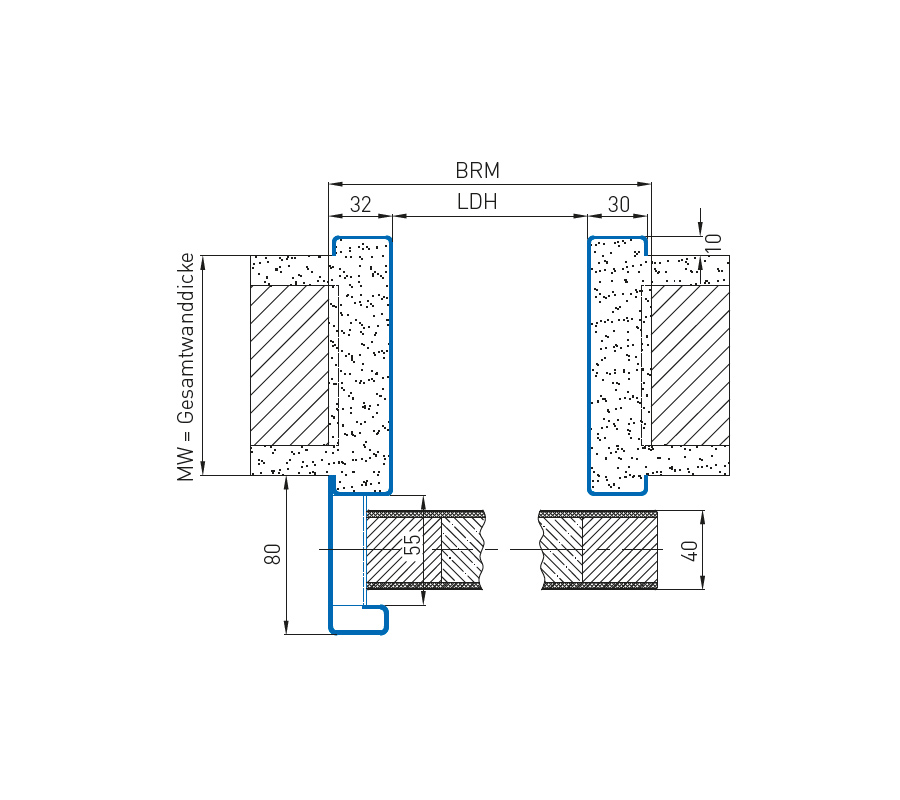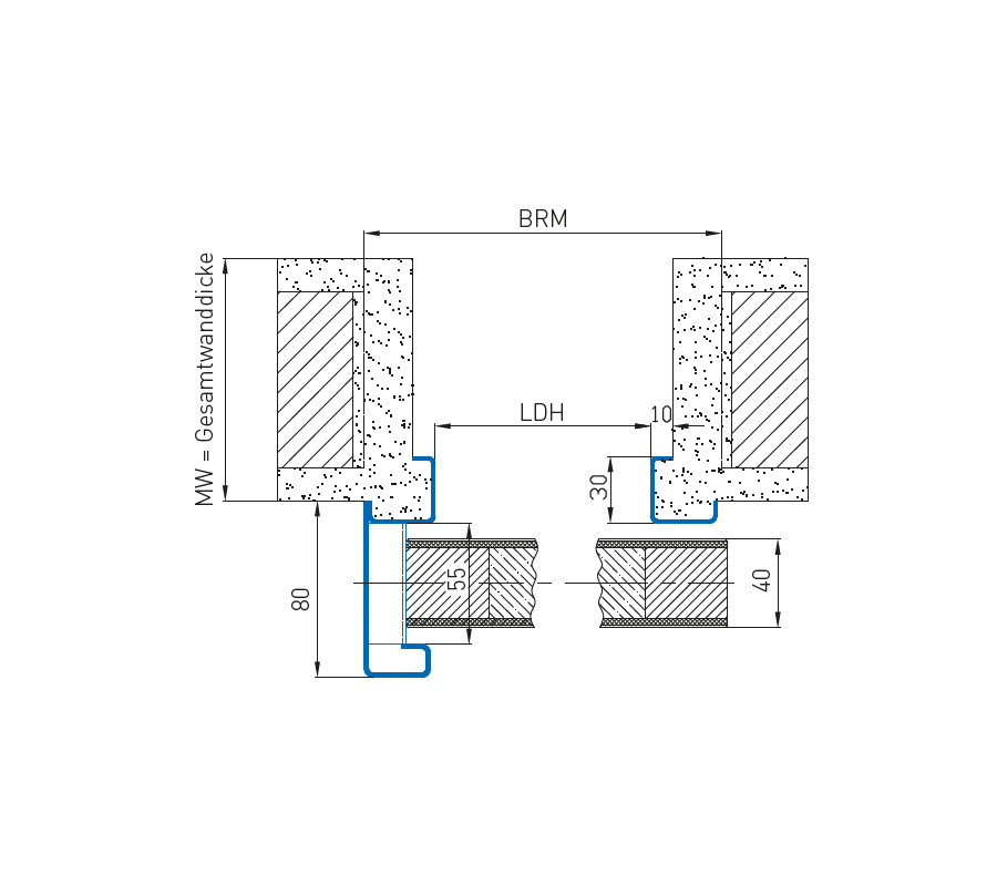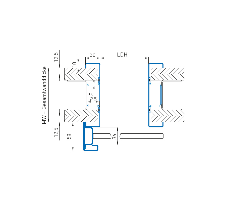 - válaszfaltok ütközőprofillal, 1-részes, vagy utólagos beépítéshez 2-részes kivitelben