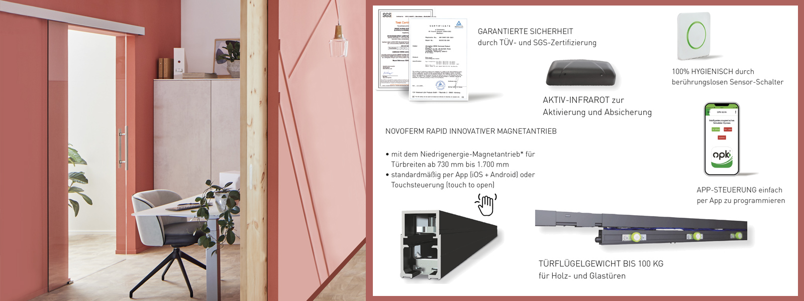 A NovoSlide Wall tolóajtórendszer optimális kezelhetőségével és vonzó kialakításával nyűgözi le a felhasználókat.