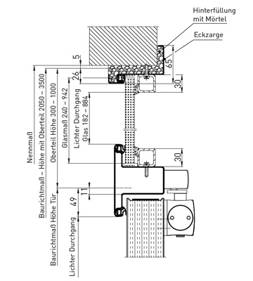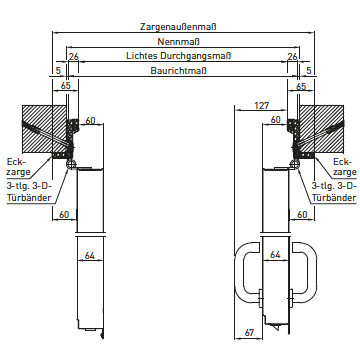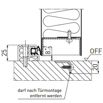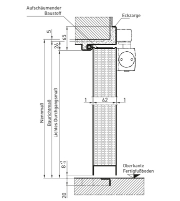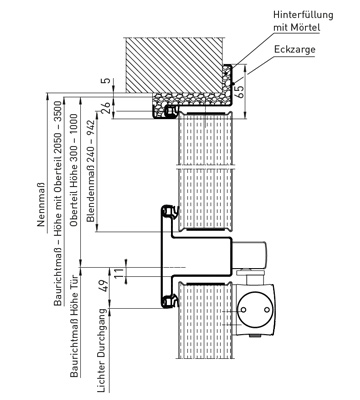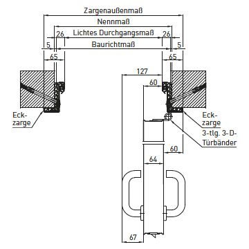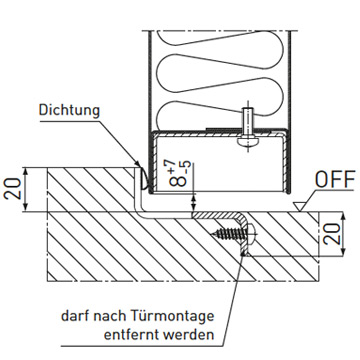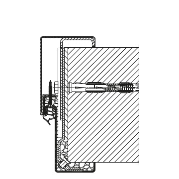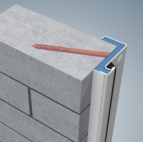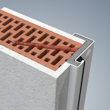 A NovoPorta Plano falc nélküli ajtóelemet standard kivitelben padlóbeállás nélküli saroktokkal szállítjuk. Tokfalcon keresztül csavarosan rögzíthető vakolatlan tégla, beton vagy (csak a Plano-nál engedélyezett) pórusbeton falba.