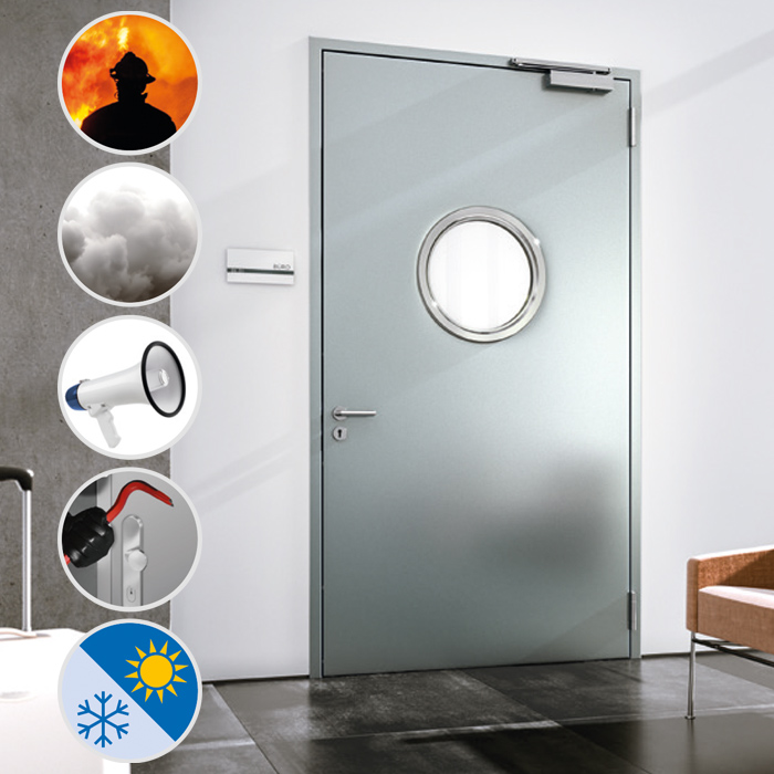 A NovoPorta Plano falc nélküli acél ajtóelemek minden igényre kínálnak megoldást: tűzgátló, (EI2 30), füstgátló, biztonsági (RC 2), hanggátló (RW = 42 dB-ig) funkciókkal is kaphatók.