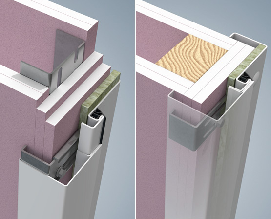 Egyszerű beépíthetőség pl. falcon keresztüli csavaros rögzítéssel, - gyors hézagkitöltés kőzetgyapot csíkokkal vagy tűzgátló purhabbal.