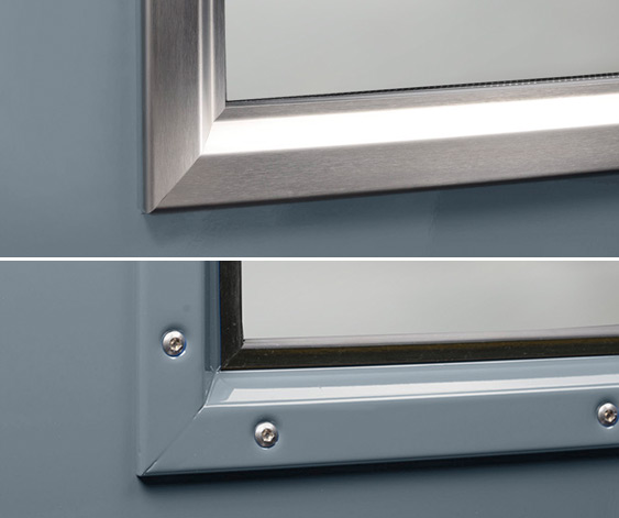 A NovoPorta Plano ajtókhoz szállított acél üvegezőkeretek az ajtó színére festhetők, mely szintén hozzájárul a nyílászáró harmonikus megjelenéséhez és az épület egységes arculatához. A keretek mindig azonos szélességűek, függetlenül attól, hogy tűzgátló vagy MZ-többcélú ajtóba kerülnek beépítésre.
