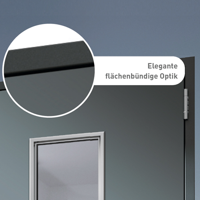 A NovoPorta Plano multifunkciós ajtó különösen a igényes építészet számára készült. Az ajtólap a tok síkjába záródik, szemben egy vastag falcos ajtóval, ahol a lap a tokra zár rá.