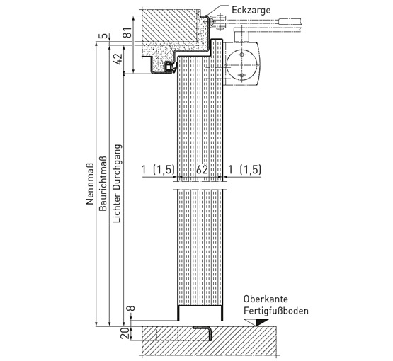 (100 - 300 mm egyedi falvastagságok esetén hosszabb szállítási határidő) - Felső ajtócsukó