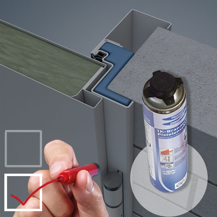 További előnyök: A minősítés szerint elegendő csak a saroktokot kitölteni, az ellentok mögötti részt nem szükséges. A különböző hézagkitöltési módszerek és gyakorlatilag az összes faltípushoz rendelkezésre álló szerelőcsomagok megkönnyítik az ajtóelemek rögzítését.